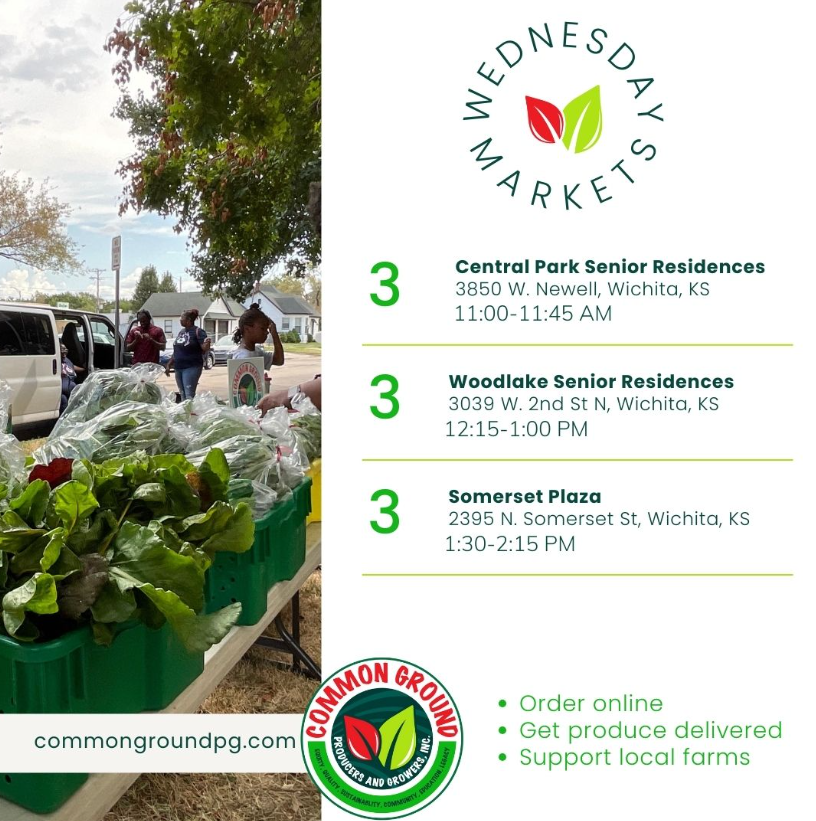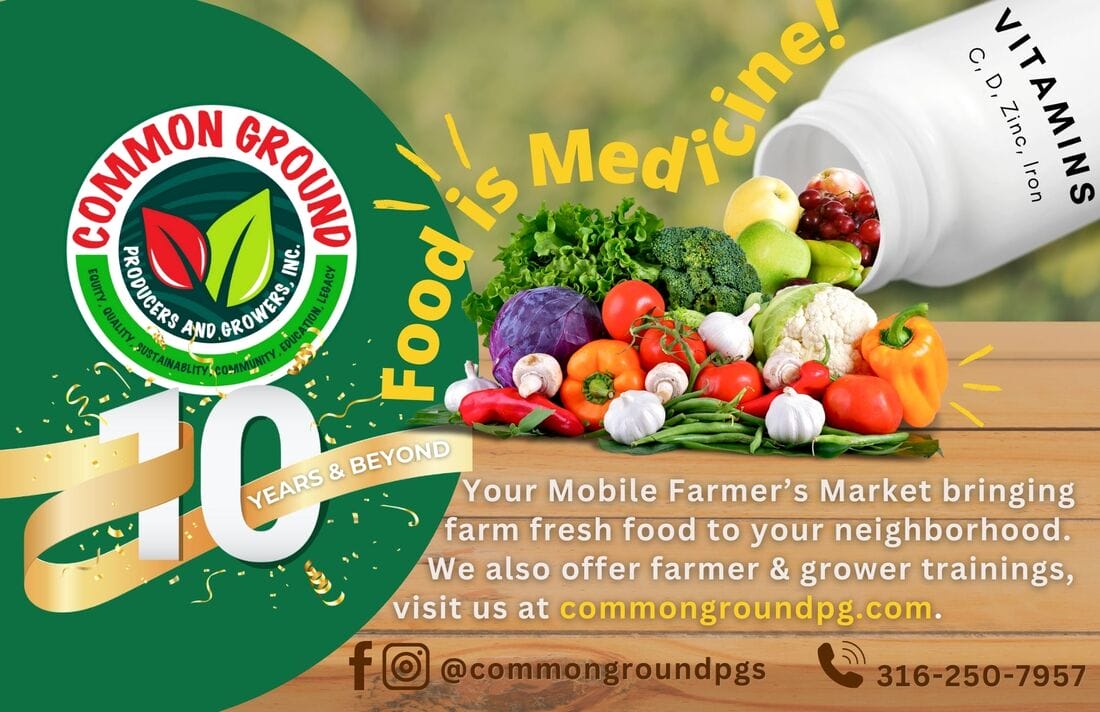 Common Ground Producers and Growers is housed on Pearson’s Family Farms, which is the largest black-owned urban farm in the area. We grow specialty crops and aggregate, process and distribute locally grown, fresh produce through the Common Ground Mobile Market and Mobile Food Hub to 33 locations in 10 cities and four counties in Kansas.